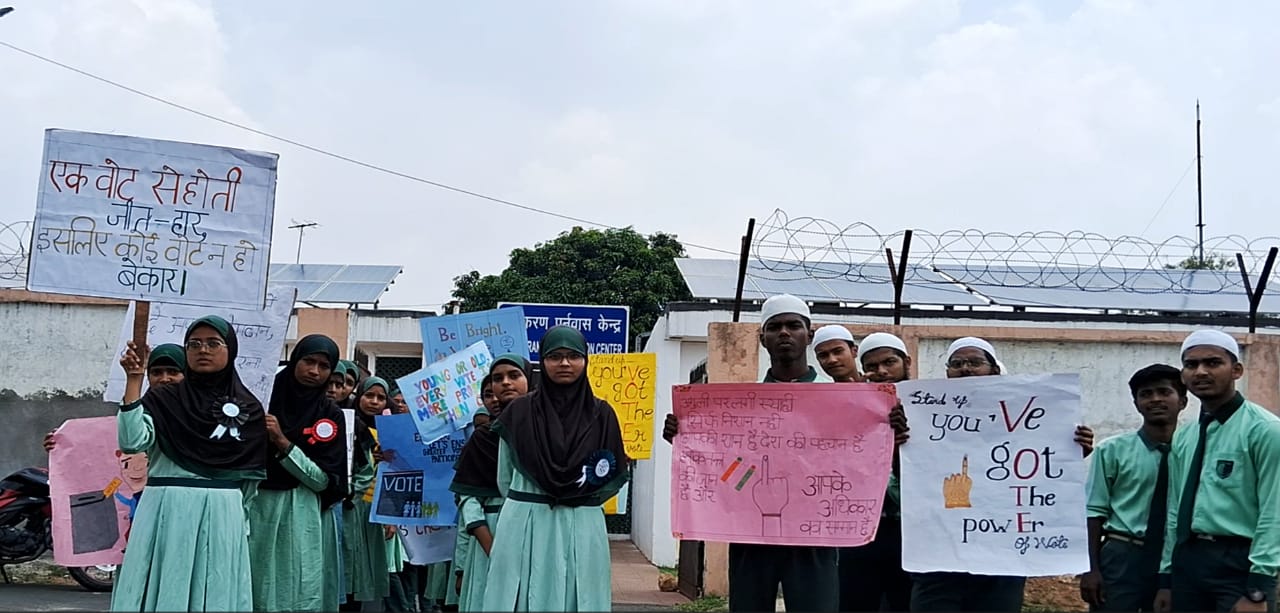 मतदान प्रतिशत बढ़ाने को लेकर हुदैबिया इंटरनेशनल स्कूल के छात्रों ने अभियान चलाया