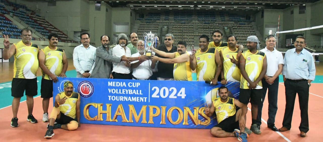 वॉलीबाल मीडिया कप टूर्नामेंट का समापन, टीम यलो ने वॉलीबॉल मीडिया कप पर जमाया कब्ज़ा