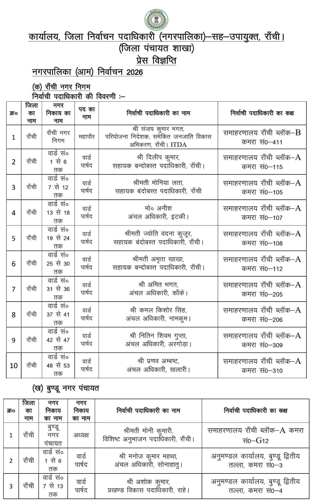 चुनाव चिन्ह आवंटन पश्चात रांची नगर निगम अंतर्गत अभ्यर्थियों के साथ सामान्य एवं व्यय प्रेक्षकों की बैठक
