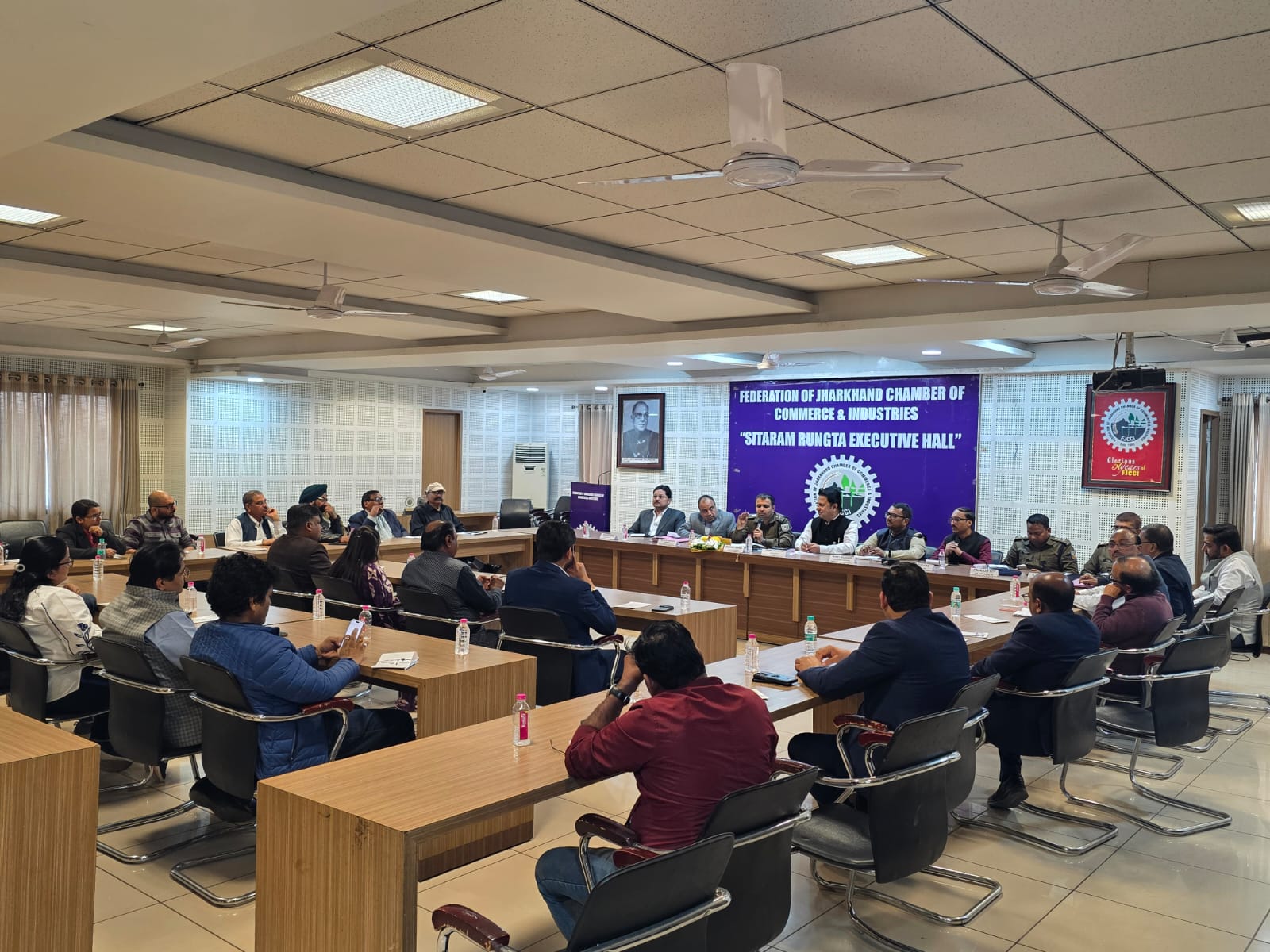 शहर की विधि व्यवस्था की मजबूती के लिए आज चैम्बर भवन में सिटी एसपी पारस राणा, सिटी डीएसपी केवी रमन एवं कोतवाली डीएसपी प्रकाश सोय के साथ झारखण्ड चैम्बर ऑफ कॉमर्स की बैठक आयोजित की गई। बैठक में हाल के दिनों में व्यापारियों को आ रही रंगदारी व धमकी भरे कॉल्स त
